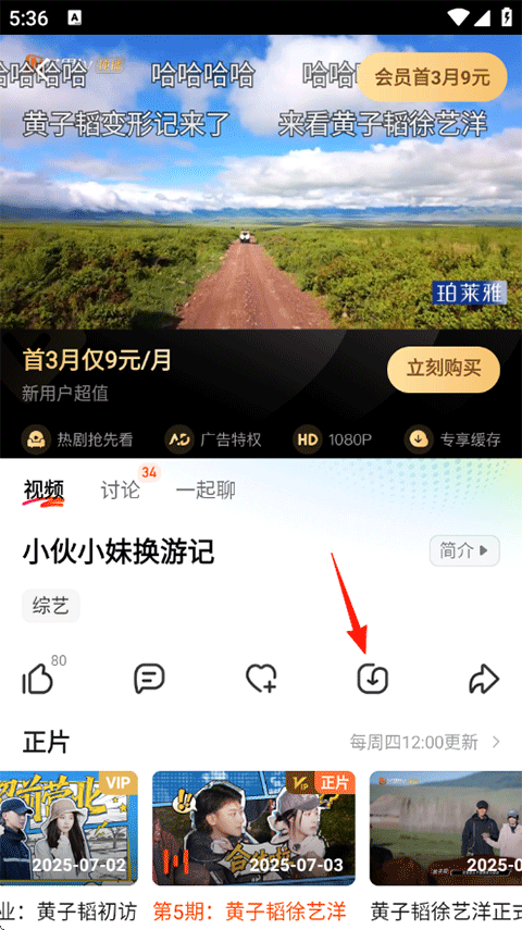 2、進入播放頁后點擊一起聊,和大家一起實時觀看,交流影片內容;